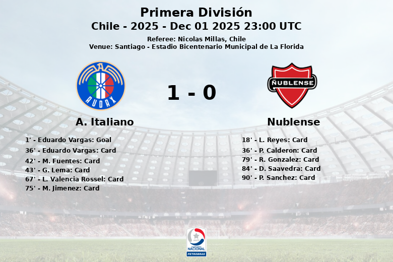 Santiago, Chile – Em um jogo disputado no Estádio Bicentenario Municipal de La Florida, Audax Italiano sucumbiu ao Ñublense em uma partida cheia de tensão e marcada pela indisciplina. Apesar de um início promissor para a equipe da casa, com um gol logo aos 1 minuto de Eduardo Vargas, com assistência de L. Riveros, o domínio territorial e a posse de bola foram amplamente favoráveis ao Ñublense, que controlou 71% do jogo.