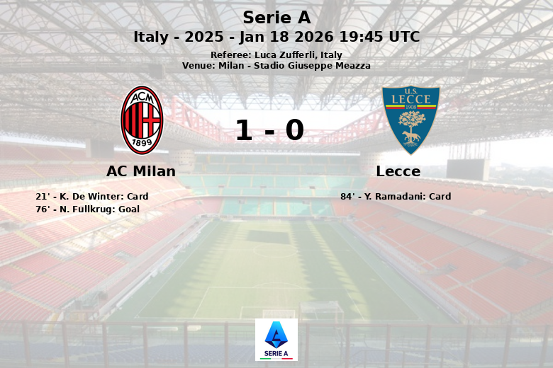 O Lecce, com 31% de posse de bola, mal conseguiu incomodar o gol adversário, terminando a partida sem nenhum chute a gol. A equipe visitante demonstrou maior agressividade no meio-campo, cometendo 11 faltas, resultando em um cartão amarelo para Y. Ramadani e outro para K. De Winter do AC Milan. O Milan, por sua vez, desfrutou de 10 escanteios contra 2 do Lecce.
