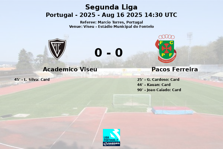 Viseu, Portugal – Académico de Viseu e Paços de Ferreira empataram sem gols em partida válida pela Segunda Liga, realizada no Estádio Municipal do Fontelo. O jogo, arbitrado por Marcio Torres, foi marcado por um jogo tático e disputado no meio-campo, embora com poucas oportunidades claras de gol para ambas as equipes.