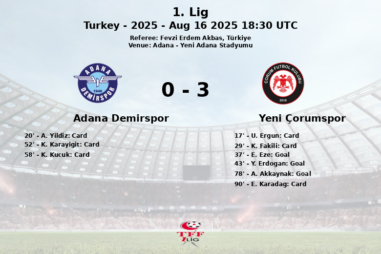 Placar final: Yeni Çorumspor 3, Adana Demirspor 0