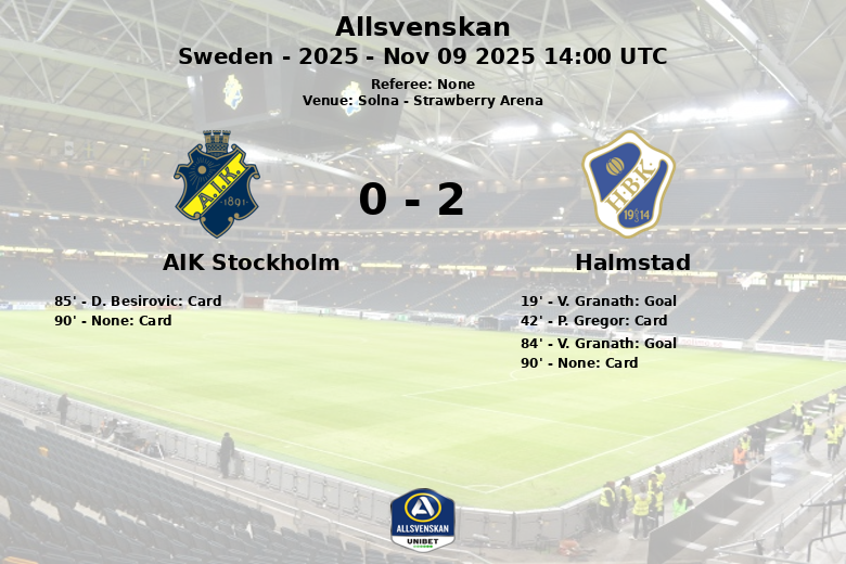 Solna, Suécia – Em um confronto disputado na Strawberry Arena, o Halmstad superou o AIK Stockholm com um placar final de 2 a 0, em uma partida correspondente à 30ª rodada da Allsvenskan. Apesar do domínio da posse de bola por parte do AIK Stockholm, com 65%, foi o Halmstad quem demonstrou maior eficácia em frente ao gol.