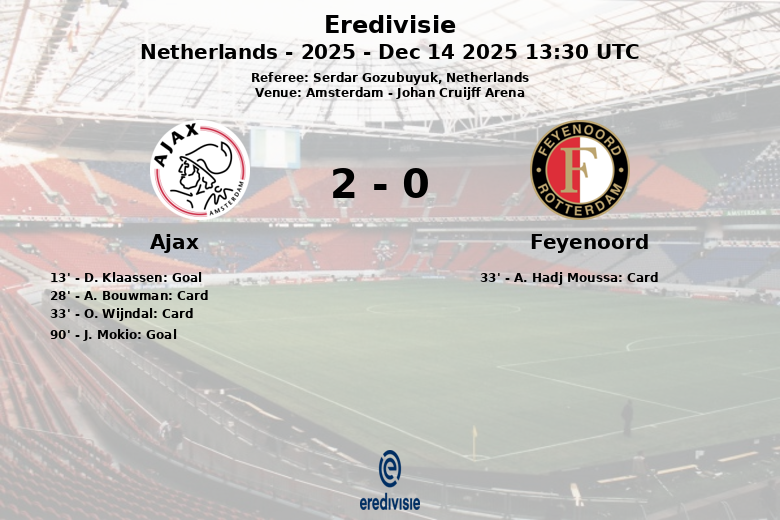 Ajax vs Feyenoord Dec 14 2025 13:30 UTC