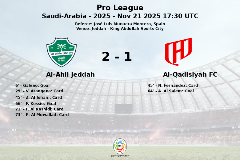 Jeddah, Arábia Saudita – Em um encontro disputado no King Abdullah Sports City, Al-Ahli Jeddah e Al-Qadisiyah FC empataram em um vibrante jogo correspondente à nona rodada da Pro League. A partida, arbitrada pelo espanhol José Luis Munuera Montero, foi marcada pela intensidade e cartões.