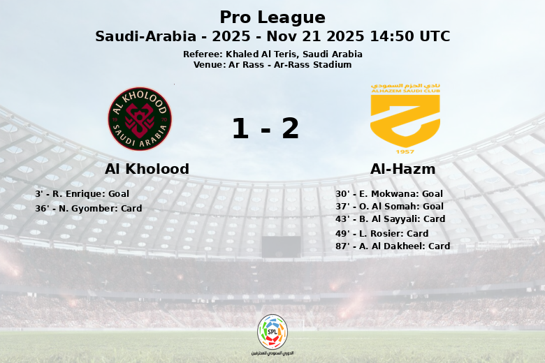 Ar Rass, 21 de novembro de 2025 – O Estádio Ar-Rass foi palco de uma partida emocionante da Pro League Saudita entre Al Kholood e Al-Hazm. O jogo, válido pela nona rodada da temporada regular, terminou com a vitória do Al-Hazm, em um jogo marcado pela intensidade e pelos cartões amarelos.