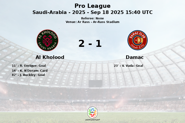 O Al Kholood abriu o placar logo aos 11 minutos com um gol de R. Enrique, dando a impressão de que assumiriam o controle da partida. No entanto, a alegria durou pouco, já que K. N’Doram recebeu um cartão amarelo aos 14 minutos, e V. Vada empatou para o Damac de pênalti aos 23 minutos.