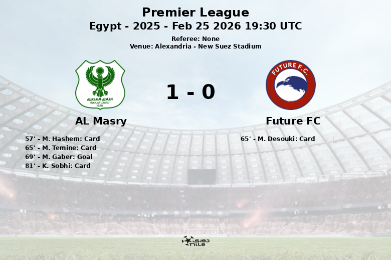 Alexandria, Egito – Em uma partida válida pela 19ª rodada da Premier League egípcia, o Al Masry venceu o Future FC no New Suez Stadium. O jogo, disputado em 25 de fevereiro de 2026, foi marcado por um jogo tático e uma batalha acirrada no meio-campo.