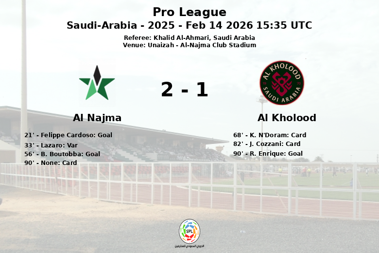 Unaizah, Arábia Saudita – Num encontro disputado no Al-Najma Club Stadium, o Al Najma conquistou uma valiosa vitória sobre o Al Kholood na 22ª jornada da Pro League saudita. A partida, arbitrada por Khalid Al-Ahmari, foi marcada pela intensidade e oportunidades de gol.