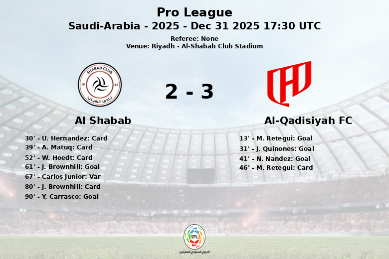 Apesar dos esforços do Al Shabab, que conseguiu encurtar distâncias com golos de J. Brownhill aos 61 minutos e Y. Carrasco de penálti aos 90 minutos, a solidez do Al-Qadisiyah foi determinante. Um golo de Carlos Junior foi anulado pelo VAR aos 67 minutos, frustrando ainda mais as aspirações do Al Shabab.