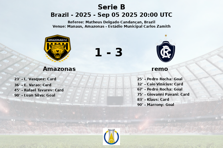 Manaus, Amazonas – Em uma partida tensa e cheia de emoções, o Remo conseguiu impor-se como visitante sobre o Amazonas no Estádio Municipal Carlos Zamith. Apesar do Amazonas dominar a posse de bola com 61%, o Remo soube ser efetivo em frente ao gol, concretizando três gols.