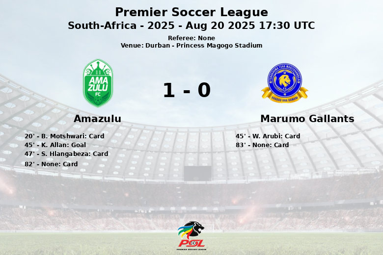 Durban, África do Sul – Em um jogo disputado no Princess Magogo Stadium, o Amazulu superou o Marumo Gallants em uma partida correspondente à terceira rodada da Premier Soccer League. Apesar de ter apenas 41% de posse de bola, o time da casa conseguiu aproveitar uma oportunidade crucial pouco antes do intervalo.