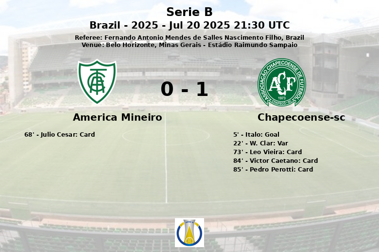 Belo Horizonte, Minas Gerais – Em partida válida pela 17ª rodada da Série B do Campeonato Brasileiro, a Chapecoense-SC conquistou uma valiosa vitória magra contra o América Mineiro no Estádio Raimundo Sampaio. Italo marcou o único gol do jogo aos 5 minutos, levando a alegria para o banco de reservas da equipe visitante.