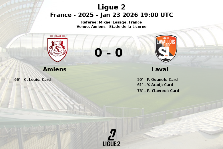 A disciplina também foi um fator importante, com quatro cartões amarelos mostrados durante a partida, um para o Amiens e três para o Laval. O árbitro Mikael Lesage tentou manter o controle de um jogo que por vezes se tornou áspero. Apesar dos esforços de ambas as equipes, o placar permaneceu inalterado, deixando um sabor agridoce tanto para o Amiens quanto para o Laval.