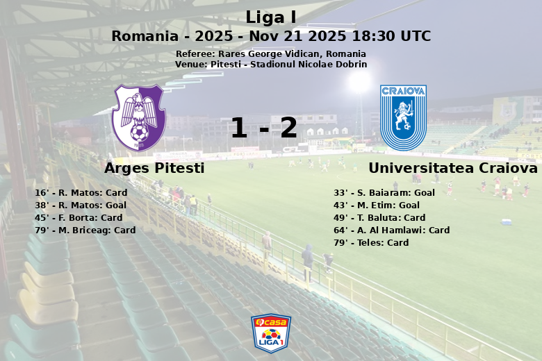 Pitesti testemunhou um vibrante jogo de futebol entre Arges e Universitatea Craiova, que terminou com um placar que refletiu a intensidade e a disputa em campo. A partida, válida pela 17ª rodada da Liga I romena, deixou os torcedores à beira de seus assentos.