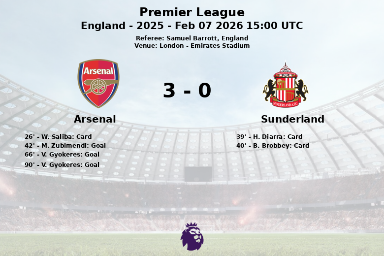 No segundo tempo, o Arsenal manteve o controle da partida e ampliou sua vantagem. V. Gyokeres marcou aos 66 minutos, assistido por K. Havertz. Gyokeres selou a vitória com um gol aos 90 minutos, desta vez assistido por G. Martinelli.