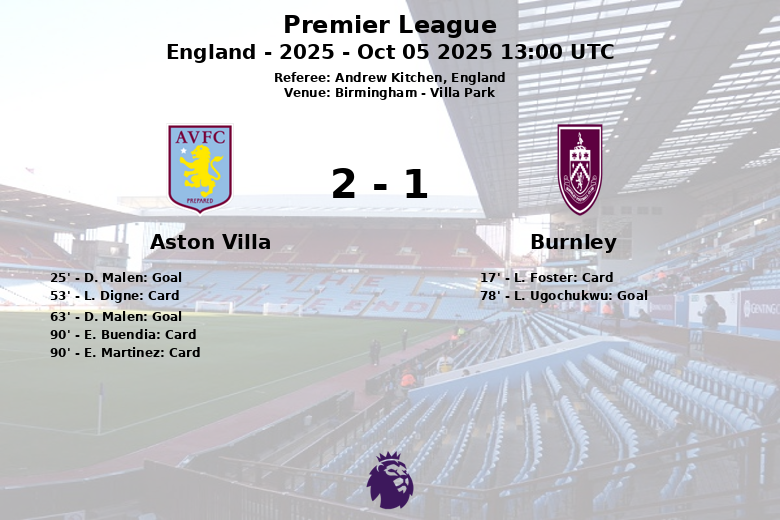 No segundo tempo, Malen reapareceu aos 63 minutos, desta vez assistido por M. Rogers, para ampliar a vantagem do Aston Villa. O Burnley conseguiu diminuir a diferença aos 78 minutos graças a um gol de L. Ugochukwu, assistido por Q. Hartman, mas não foi o suficiente para mudar o rumo da partida.