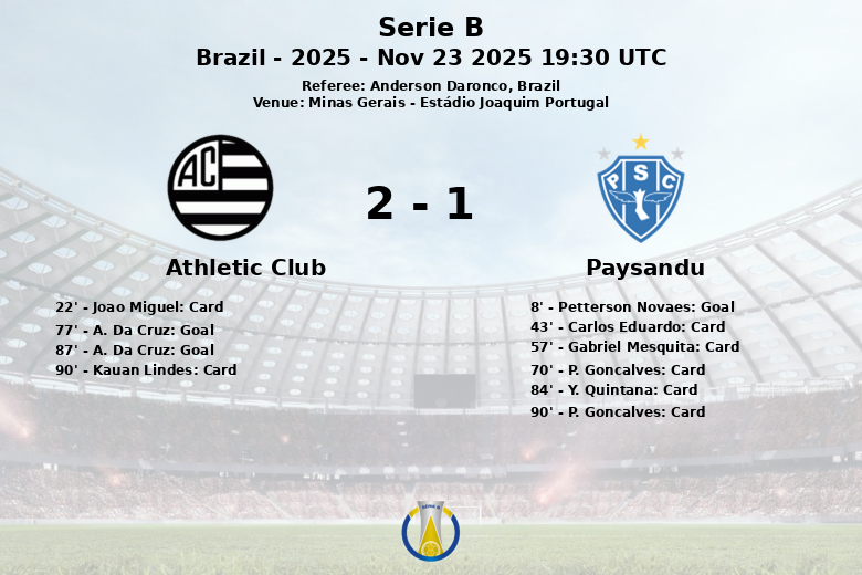 Minas Gerais foi palco de um jogo vibrante e disputado entre Paysandu e Athletic Club no Estádio Joaquim Portugal, culminando em um empate que reflete a intensidade mostrada em campo. A partida, correspondente à 38ª rodada da Série B brasileira de 2025, foi marcada por alta tensão e constantes interrupções.