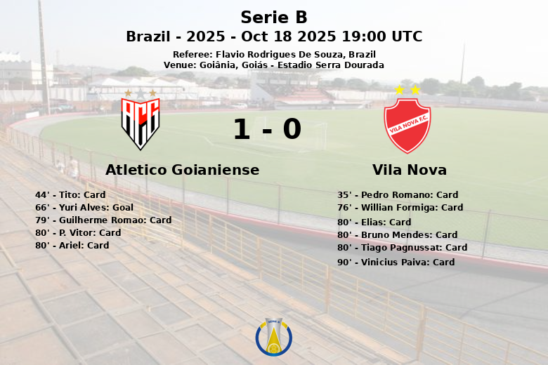 No total, foram mostrados dez cartões amarelos durante a partida, seis para jogadores do Vila Nova e quatro para o Atlético Goianiense, refletindo a intensidade e o atrito presentes em campo. Embora o Vila Nova tenha tentado reagir, a defesa do Atlético Goianiense se manteve sólida, garantindo a vitória para sua equipe. O Atlético Goianiense teve 1 escanteios contra 2 escanteios do Vila Nova e 16 faltas contra 9 faltas do Vila Nova.