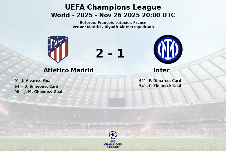 Atletico Madrid vs Inter Nov 26 2025 20:00 UTC