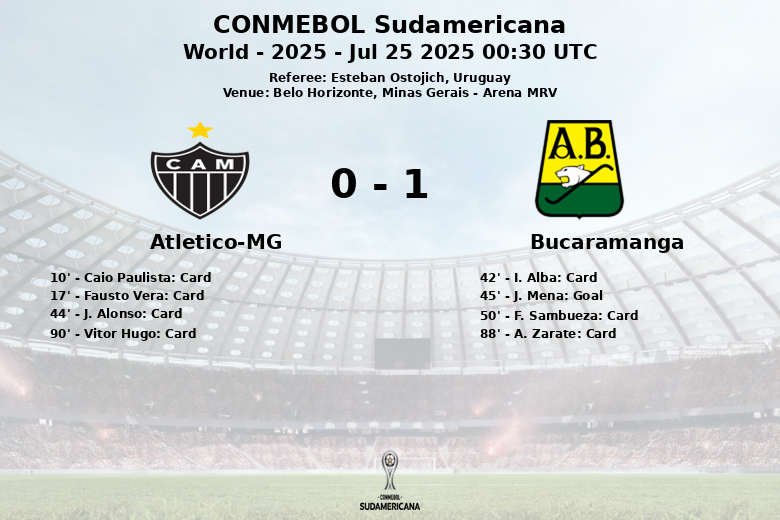A partida, apitada pelo uruguaio Esteban Ostojich, foi marcada por intensidade e numerosas faltas, resultando em um total de oito cartões amarelos. O Atlético-MG acumulou cinco advertências, incluindo cartões para Caio Paulista, Fausto Vera, J. Alonso e Vitor Hugo, enquanto o Bucaramanga viu I. Alba, F. Sambueza e A. Zarate receberem cartões amarelos.
