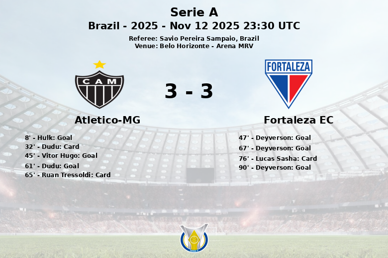 Atlético-MG e Fortaleza EC protagonizam empate emocionante em Belo Horizonte