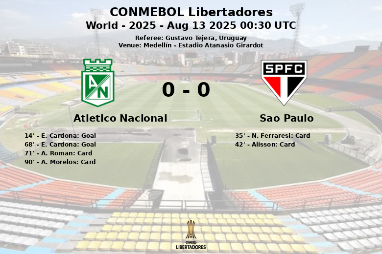 Medellín, Colômbia – Em uma partida disputada no Estádio Atanasio Girardot, o Atlético Nacional superou o São Paulo no jogo de ida das oitavas de final da CONMEBOL Libertadores. A equipe da casa impôs seu jogo com 55% de posse de bola, dominando o meio-campo e gerando um total de 18 chutes, embora a pontaria não tenha sido seu melhor aliado, com apenas um chute a gol.
