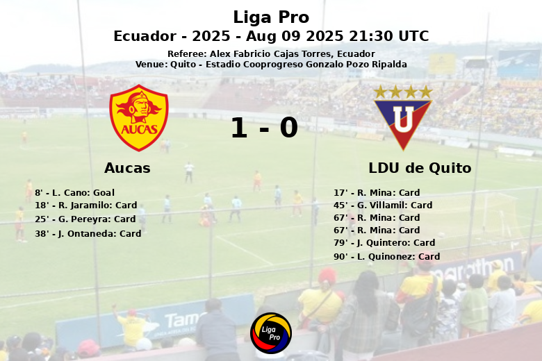 O jogo foi manchado por uma série de cartões. O Aucas recebeu dois cartões amarelos e um cartão vermelho, enquanto a LDU de Quito acumulou cinco cartões amarelos e um cartão vermelho. A expulsão de G. Pereyra pelo Aucas aos 25 minutos complicou a partida para a equipe da casa, forçando-a a jogar com dez homens durante grande parte do jogo. A LDU de Quito, apesar de ter 71% de posse de bola e gerar mais chutes a gol (16 no total), não conseguiu converter suas oportunidades. A expulsão de R. Mina aos 67 minutos também deixou a LDU com 10 jogadores.