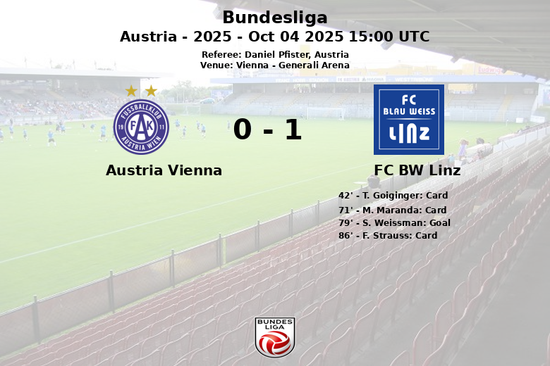 O momento crucial da partida ocorreu aos 79 minutos, quando S. Weissman do FC BW Linz converteu um pênalti, dando a vitória ao seu time. A partida, correspondente à nona rodada da temporada regular da Bundesliga, deixou claro que a luta pela classificação será árdua até o fim. Apesar de seus esforços e de gerar mais escanteios (8 contra 4), o Austria Vienna não conseguiu concretizar suas oportunidades e acabou cedendo os três pontos em casa.