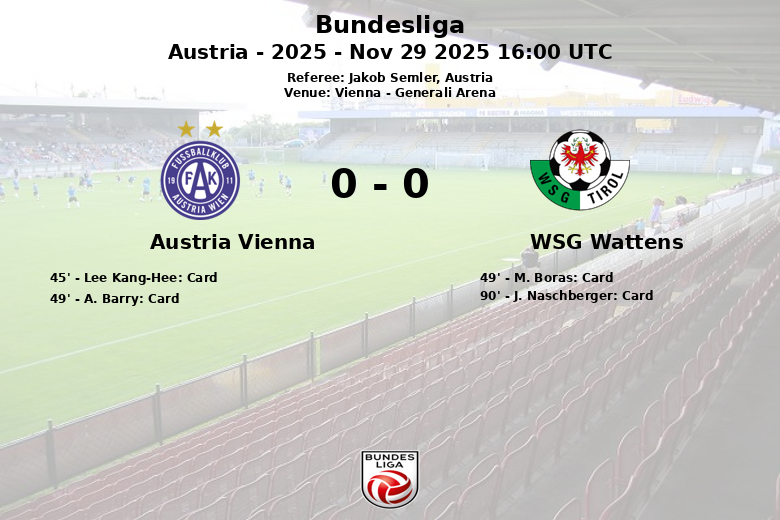 O encontro foi marcado pela intensidade no meio-campo, refletida nas numerosas faltas cometidas por ambos os lados: 12 para o Austria Vienna e 16 para o WSG Wattens. A disciplina também foi testada, com cartões amarelos mostrados a Lee Kang-Hee e A. Barry do Austria Vienna, e a M. Boras e J. Naschberger do WSG Wattens. Apesar dos esforços de ambas as equipes, nenhuma conseguiu quebrar o empate, deixando um gosto agridoce na boca dos espectadores.