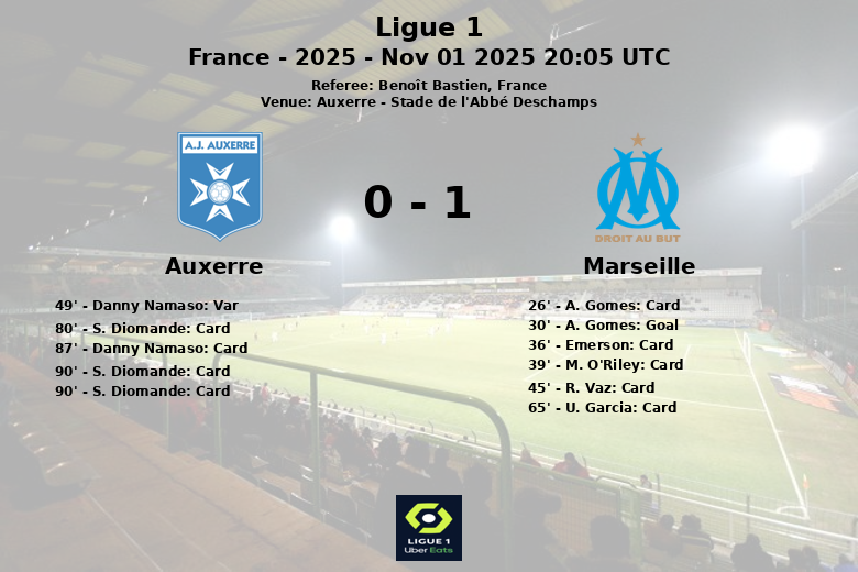 Auxerre, França – Em uma partida carregada de tensão e controvérsia, o Marselha saiu vitorioso do Stade de l’Abbé Deschamps contra o Auxerre na 11ª rodada da Ligue 1. O único gol do jogo, marcado por A. Gomes aos 30 minutos, provou ser suficiente para garantir os três pontos para a equipe visitante.