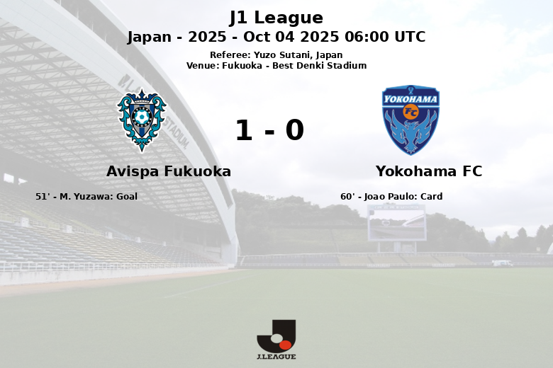 Fukuoka, Japão – Em uma partida disputada no Best Denki Stadium, o Avispa Fukuoka conquistou uma vitória apertada sobre o Yokohama FC, em um jogo correspondente à 33ª rodada da J1 League. O gol de M. Yuzawa, aos 51 minutos, com assistência de S. Nago, foi suficiente para garantir os três pontos para a equipe da casa.