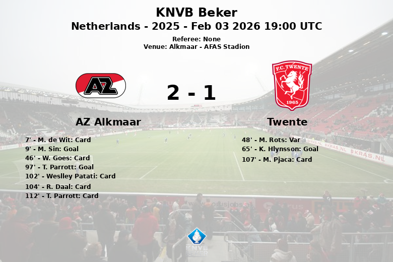 O encontro foi também marcado pela disciplina, com um total de 6 cartões amarelos mostrados, 5 para o AZ Alkmaar e 1 para o Twente. O AZ Alkmaar avançou para a próxima fase da KNVB Beker após uma batalha épica em seu próprio terreno.