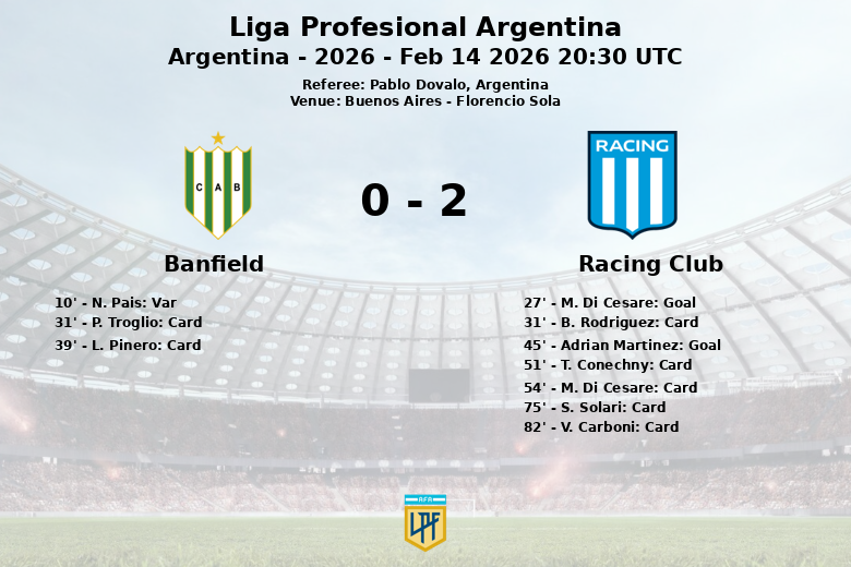 Buenos Aires – Racing Club derrotou o Banfield no Florencio Sola em uma partida marcada por polêmica e disciplina. O jogo, correspondente à quinta rodada da Liga Profesional Argentina, terminou com um placar favorável à Academia.