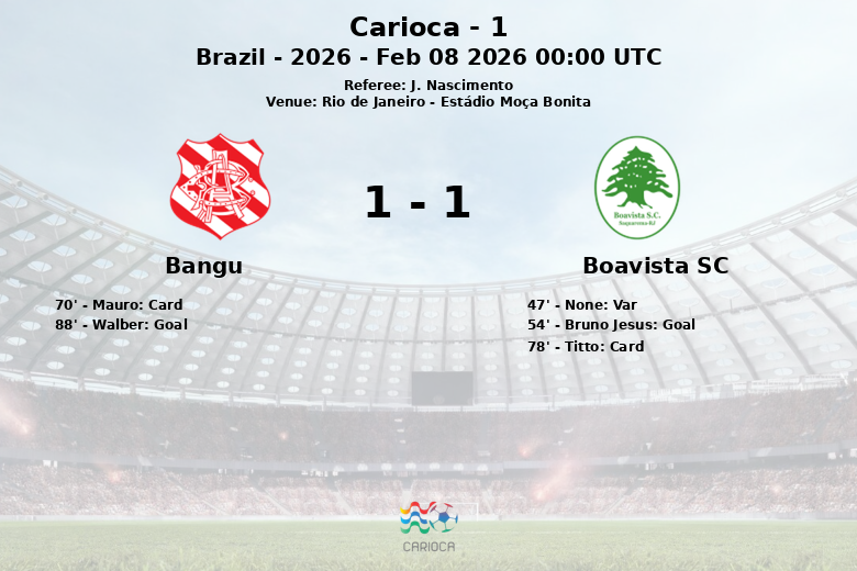 Rio de Janeiro – Um jogo vibrante no Estádio Moça Bonita terminou em empate, deixando os torcedores sem fôlego até o último minuto. Boavista SC e Bangu protagonizaram um duelo marcado pela intensidade e pelas decisões da arbitragem.