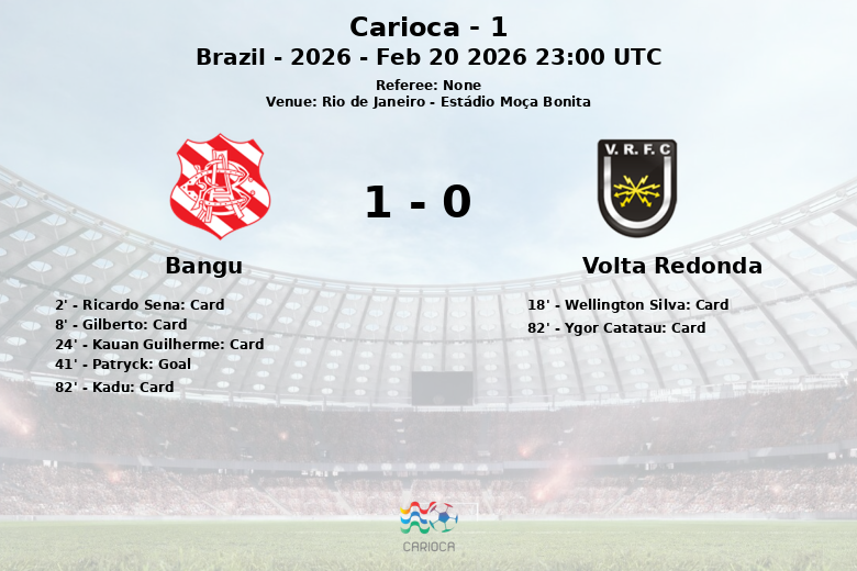 Rio de Janeiro, 20 de fevereiro de 2026 – Em um encontro disputado no Estádio Moça Bonita, o Bangu conquistou uma vitória apertada de 1 a 0 sobre o Volta Redonda, no jogo de ida das semifinais do Carioca 1. O único gol da partida aconteceu aos 41 minutos, quando Patryck, assistido por Kauan Guilherme, superou o goleiro visitante com um chute certeiro.