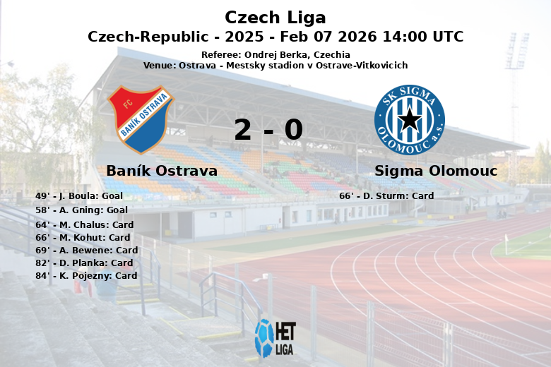 Ostrava, República Tcheca – Em uma partida realizada no Mestsky stadion v Ostrave-Vitkovicich, o Baník Ostrava garantiu uma importante vitória contra o Sigma Olomouc. Apesar do Sigma Olomouc ter dominado a posse de bola com 60%, o Baník Ostrava aproveitou as suas oportunidades e conquistou a vitória.