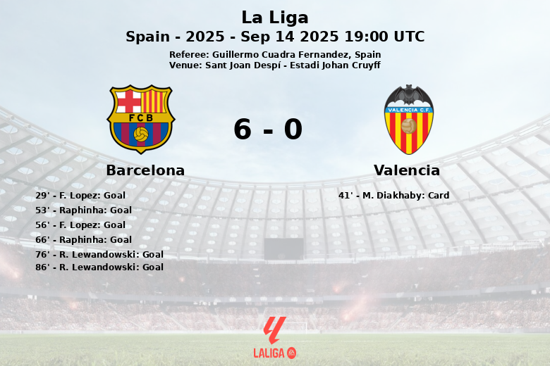 Sant Joan Despí, Espanha – O FC Barcelona ofereceu uma aula de futebol ofensivo no Estadi Johan Cruyff, derrotando convincentemente o Valencia em uma partida correspondente à quarta rodada de La Liga. O domínio blaugrana foi absoluto, refletido em uma posse de bola retumbante de 72%.