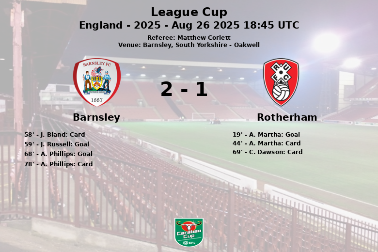 Barnsley, South Yorkshire – Num jogo disputado no estádio Oakwell, o Barnsley orquestrou uma remontada emocionante para vencer o Rotherham United na segunda rodada da League Cup. Sob o olhar atento do árbitro Matthew Corlett, a equipe da casa demonstrou sua capacidade de reação após um início difícil.
