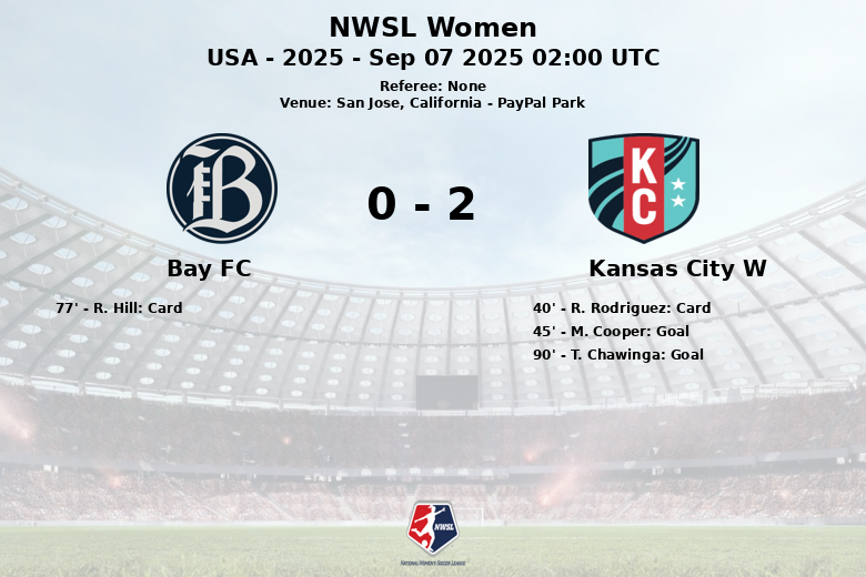 San Jose, Califórnia – Em uma partida disputada no PayPal Park, Kansas City Women demonstrou sua superioridade ao vencer Bay FC. Apesar de uma posse de bola dividida (51% para Kansas City Women e 49% para Bay FC), o time visitante dominou as oportunidades de gol. O primeiro gol chegou pouco antes do intervalo, aos 45 minutos, graças a M. Cooper assistida por H. Mace.
