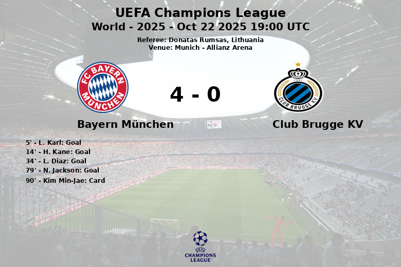 Munique, Alemanha – O Bayern München dominou o Club Brugge KV em um jogo da Liga dos Campeões da UEFA realizado na Allianz Arena. A equipe bávara garantiu uma vitória convincente, demonstrando sua superioridade tanto na posse de bola quanto na criação de oportunidades de gol.