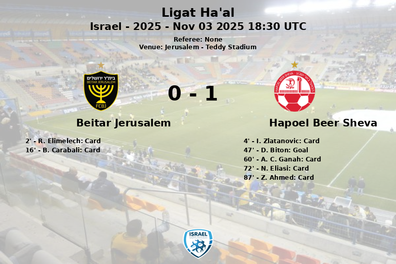 Em um jogo disputado no Teddy Stadium em Jerusalém, o Hapoel Beer Sheva superou o Beitar Jerusalém com um placar de 1 a 0. O jogo, correspondente à nona rodada da Ligat Ha’al, foi marcado pela intensidade e batalhas no meio-campo.