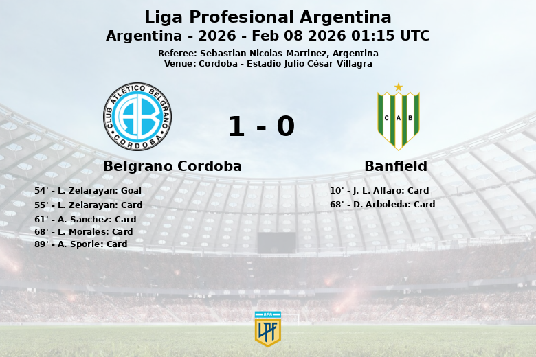As estatísticas refletem a superioridade do Belgrano, que gerou 16 chutes, dos quais 8 foram no gol, contra 6 chutes do Banfield, com apenas 3 no gol. Os mandantes também dominaram nos escanteios, com 9 a favor contra apenas 1 do Banfield. A partida foi intensa, com um total de 25 faltas e 6 cartões amarelos mostrados, 4 para jogadores do Belgrano (Zelarayan, Sanchez, Morales, Sporle) e 2 para o Banfield (Alfaro, Arboleda). Finalmente, o Belgrano ficou com os três pontos, consolidando sua posição na Liga Profesional Argentina.