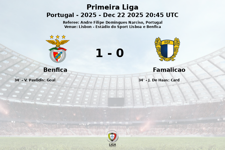O único gol da partida ocorreu aos 34 minutos, quando V. Pavlidis converteu um pênalti para o Benfica, após uma falta que também rendeu um cartão amarelo a J. De Haas do Famalicão. Apesar da desvantagem, o Famalicão tentou reagir, embora tenha conseguido fazer apenas 4 chutes, dos quais apenas 2 foram no alvo. O Benfica, por outro lado, gerou 9 chances de gol, com 6 delas direcionadas ao gol adversário. A partida, arbitrada por Andre Filipe Domingues Narciso, foi caracterizada por um jogo tático e disputado no meio-campo. O resultado final foi Benfica 1, Famalicão 0.