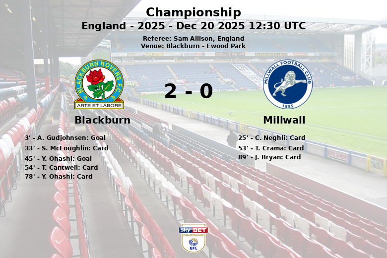 O Blackburn Rovers garantiu uma vitória em casa sobre o Millwall em uma partida realizada em Ewood Park. O jogo, correspondente à 22ª rodada do Championship, foi marcado pela eficácia do Blackburn em momentos cruciais.