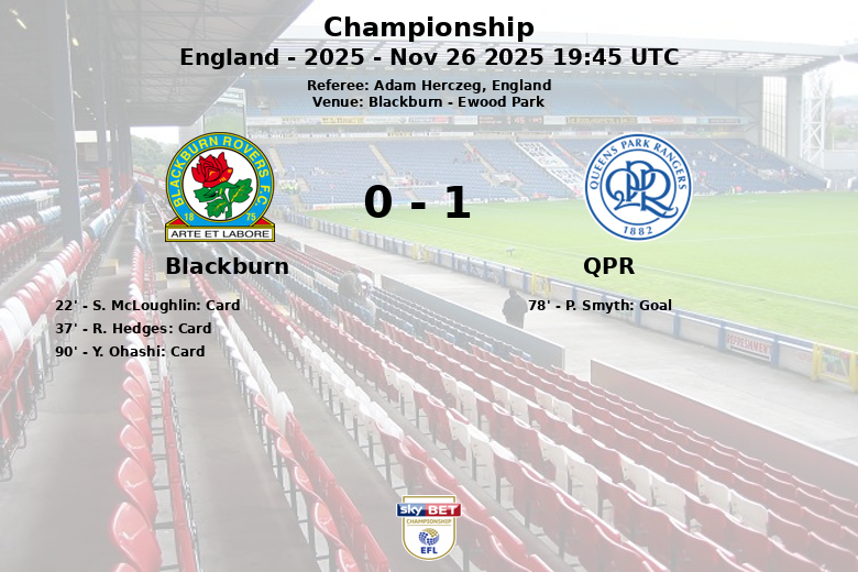 O jogo foi caracterizado pela intensidade, refletida nas 14 faltas cometidas pelo Blackburn, que lhes valeram três cartões amarelos (McLoughlin, Hedges e Ohashi). O QPR, em contraste, manteve a compostura e não recebeu quaisquer advertências. O golo da vitória para o QPR surgiu aos 78 minutos, marcado por P. Smyth, sem assistência aparente, libertando a alegria entre os adeptos visitantes. Apesar dos seis cantos a favor do Blackburn, contra quatro do QPR, a equipa da casa não conseguiu convertê-los em golos. O jogo, arbitrado por Adam Herczeg, decorreu no âmbito da jornada 17 do Championship inglês.