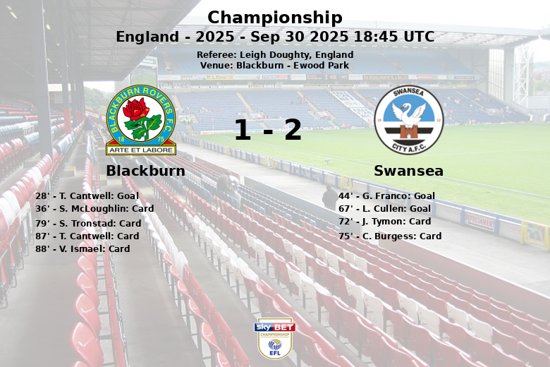 Blackburn vs Swansea Sep 30 2025 18:45 UTC