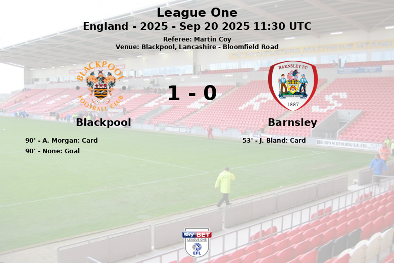 Blackpool vs Barnsley Sep 20 2025 11:30 UTC