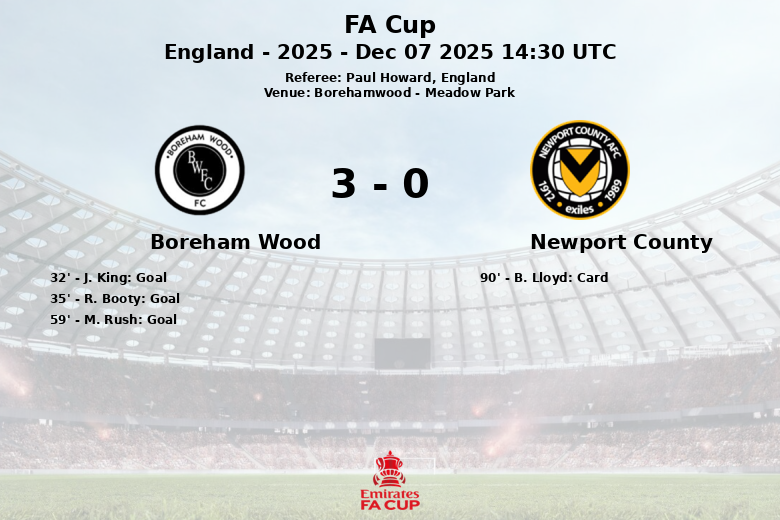 Borehamwood, Inglaterra – Boreham Wood apresentou uma exibição impressionante de futebol ofensivo em seu estádio, Meadow Park, superando o Newport County com uma vitória de 3-0 em uma partida da FA Cup disputada em 7 de dezembro de 2025. Desde o início, a equipe da casa demonstrou sua superioridade, mantendo 60% da posse de bola e gerando perigo constante em torno do gol adversário.