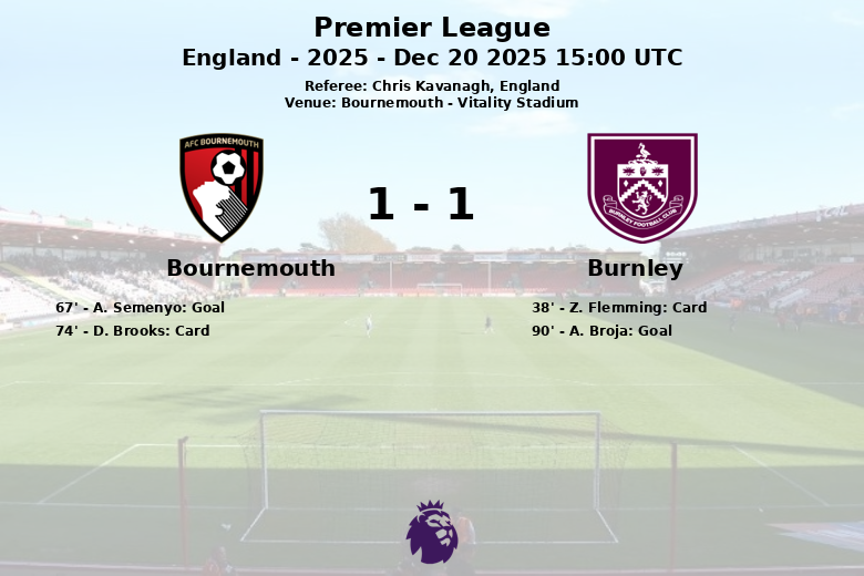 O jogo permaneceu sem gols até os 67 minutos, quando A. Semenyo marcou para o Bournemouth, colocando o placar em 1-0. A partida foi caracterizada por sua intensidade, refletida no número de faltas cometidas por ambas as equipes: 11 de cada lado. Z. Flemming do Burnley recebeu um cartão amarelo aos 38 minutos, e D. Brooks do Bournemouth recebeu um aos 74 minutos. Quando o jogo parecia definido, A. Broja empatou para o Burnley aos 90 minutos, com assistência de M. Edwards, selando assim o empate final. A partida, arbitrada por Chris Kavanagh, foi disputada no Vitality Stadium em Bournemouth.