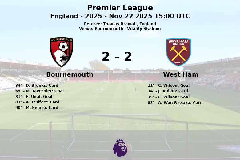 Bournemouth vs West Ham Nov 22 2025 15:00 UTC