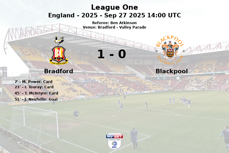 Bradford vs Blackpool Sep 27 2025 14:00 UTC